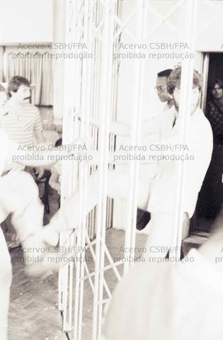 Assembleia dos metalúrgicos do ABC após a invasão no sindicato sob intervenção (Local desconhecido, 31 mar. 1984). Crédito: Vera Jursys