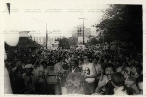 Assembleia dos metalúrgicos em greve (Novo Hamburgo-RS, 3 e 4 jun. 1982). / Crédito: Autoria desconhecida.