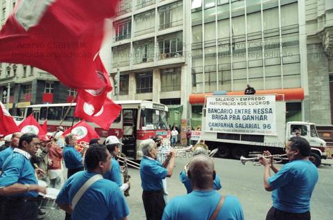Ato da greve dos bancários no Centro (São Paulo-SP, 27 set. 1996). Crédito: Vera Jursys