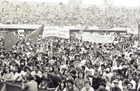 Ato do 1º de Maio, Dia do Trabalhador, na Vila Euclides (São Bernardo do Campo-SP, 01 mai. 1992). Crédito: Vera Jursys