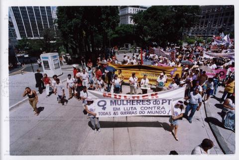 Caminhada “Mulheres”, com várias militantes do Movimento de Mulheres do PT (São Paulo-SP, Data desconhecida). / Crédito: Autoria desconhecida