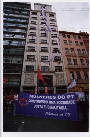 Caminhada “Mulheres”, com várias militantes do Movimento de Mulheres do PT (São Paulo-SP, Data desconhecida). / Crédito: Autoria desconhecida
