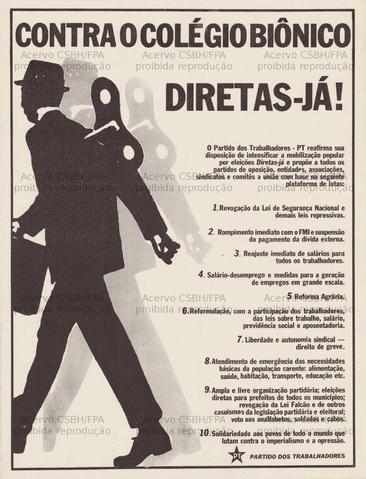 Contra o Colégio Biônico: Diretas Já!. (Data desconhecida, Brasil).