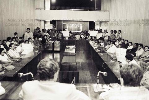 Greve dos trabalhadores de frigoríficos (Local desconhecido, mai. 1986). Crédito: Vera Jursys
