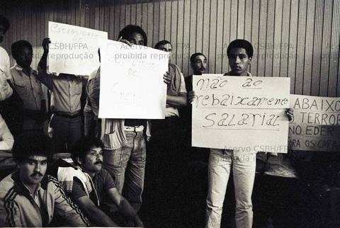 Greve dos trabalhadores de frigoríficos (Local desconhecido, mai. 1986). Crédito: Vera Jursys