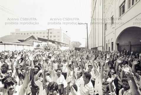 Greve dos trabalhadores do setor de bebidas (São Paulo-SP, [1985-1987]). Crédito: Vera Jursys