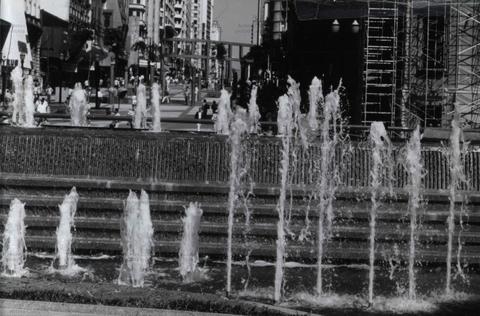 Inauguração do Chafariz São João no vale do Anhagabaú (São Paulo-SP, 20 nov. 1991). / Crédito: Luz Bittar/Angular.