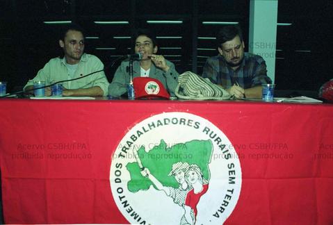 Palestra com MST organizada pelo Sindicato dos Bancários de São Paulo, Osasco e Região (Osasco-SP, 1996). Crédito: Vera Jursys
