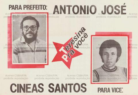 Para Prefeito: Antonio José – Teresina pra você – Cineas Santo – Para Vice