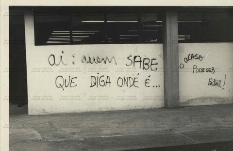 Pichação “quem sabe que diga onde é” (Local desconhecido, Data desconhecida). / Crédito: Ennio Brauns Filho.