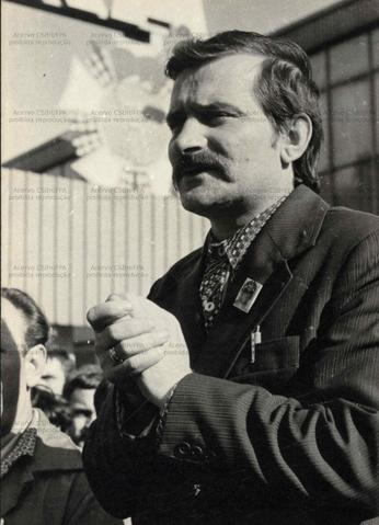Retrato de Lech Walesa em evento não identificado ([Polônia?], Data desconhecida). / Crédito: Autoria desconhecida.