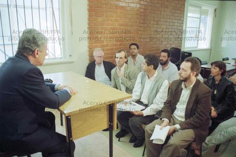 Reunião da Comissão dos bancários do Banespa com a candidatura “Rossi governador” (PDT) ([São Paulo-SP?], 1998). Crédito: Vera Jursys