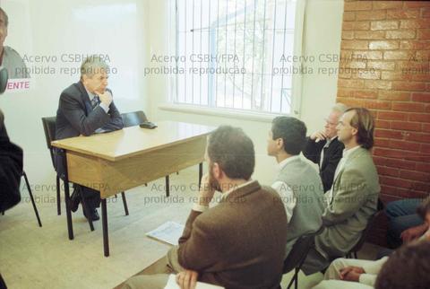 Reunião da Comissão dos bancários do Banespa com a candidatura “Rossi governador” (PDT) ([São Paulo-SP?], 1998). Crédito: Vera Jursys