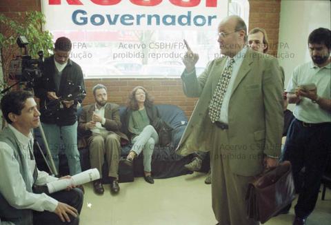 Reunião da Comissão dos bancários do Banespa com a candidatura “Rossi governador” (PDT) ([São Paulo-SP?], 1998). Crédito: Vera Jursys