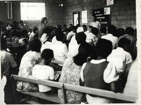 Reunião de membros da comunidade na igreja (Local desconhecido, Data desconhecida). / Crédito: Autoria desconhecida.
