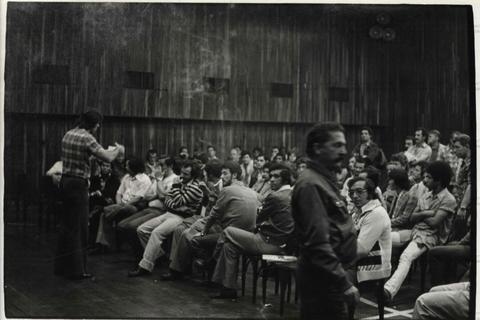 Reunião dos funcionários da Light (São Paulo-SP, 1979). / Crédito: Autoria desconhecida.