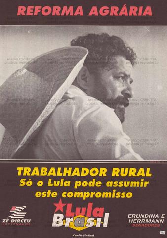 Trabalhador Rural: Só o Lula pode assumir esse compromisso – Reforma Agrária – Lula Brasil – Zé Dirceu Governador – Erundina e Herrmann Senadores